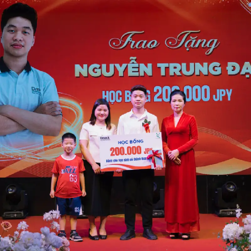 Nguyễn Trung Đại là học sinh đến từ Việt Yên (Bắc Giang cũ, nay thuộc tỉnh Bắc Ninh), đã hoàn thiện hồ sơ và chính thức xuất cảnh chương trình du học Nhật Bản kỳ bay tháng 04/2025. Em xuất sắc nhận học bổng trường tiếng tại Nhật trị giá 200.000 JPY và đạt thành tích học tập xuất sắc trong quá trình học tập tại Nhân Phú.