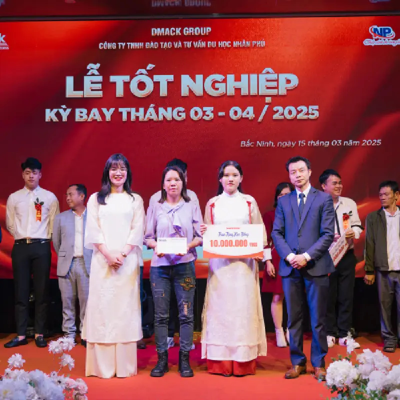 Vũ Thị Thanh Huyền là học sinh đến từ Tiên Du, Bắc Ninh, đã hoàn thiện hồ sơ và chính thức xuất cảnh chương trình du học Nhật Bản kỳ bay tháng 04/2025, đồng thời đạt học bổng trường tiếng Nhật trị giá 100.000 JPY.