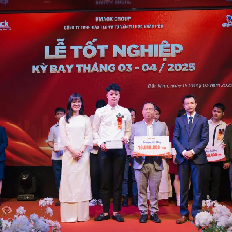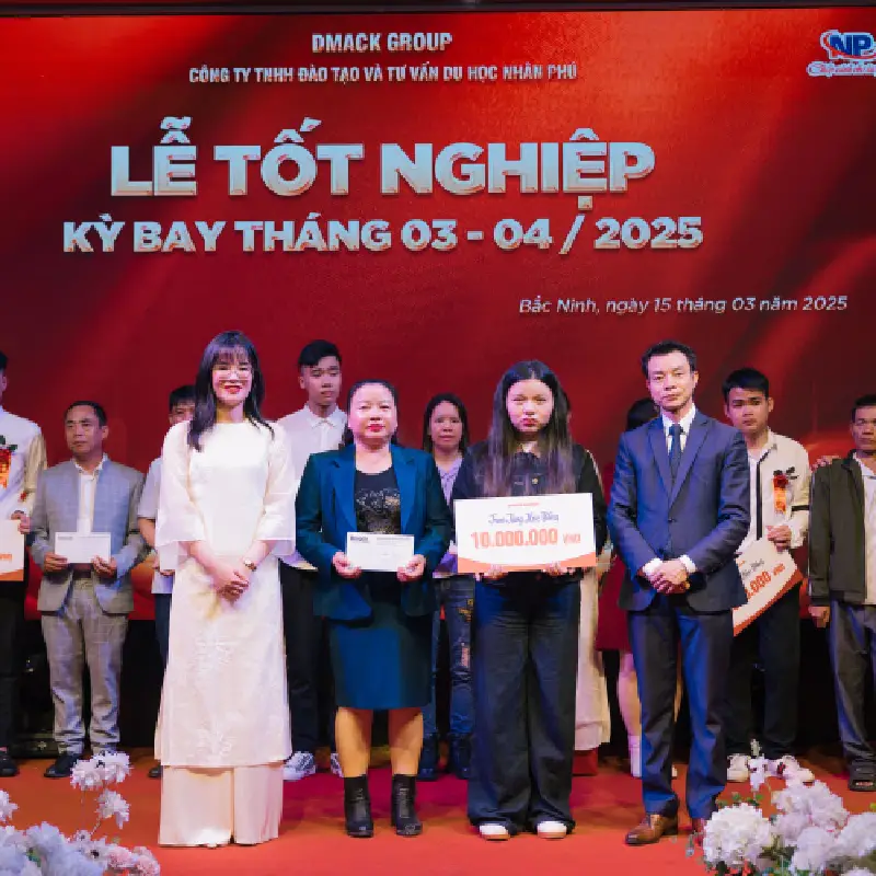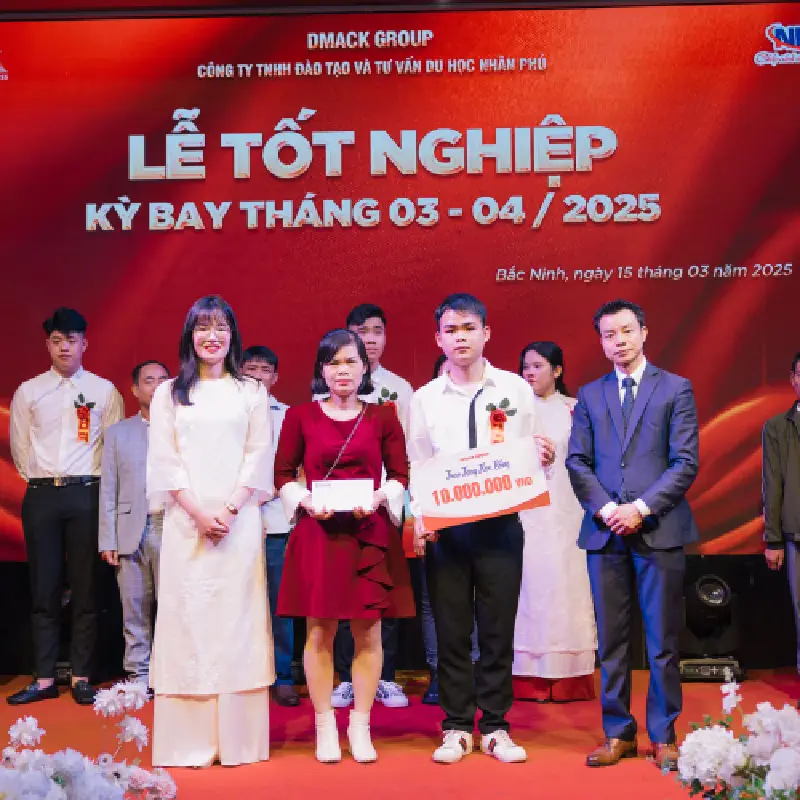 Nguyễn Huy Đức là học sinh đến từ Gia Bình, Bắc Ninh, đã hoàn thiện hồ sơ và chính thức xuất cảnh chương trình du học Nhật Bản kỳ bay tháng 04/2025, đồng thời đạt Học bổng Cánh Diều Nhân Phú trị giá 10 triệu đồng.